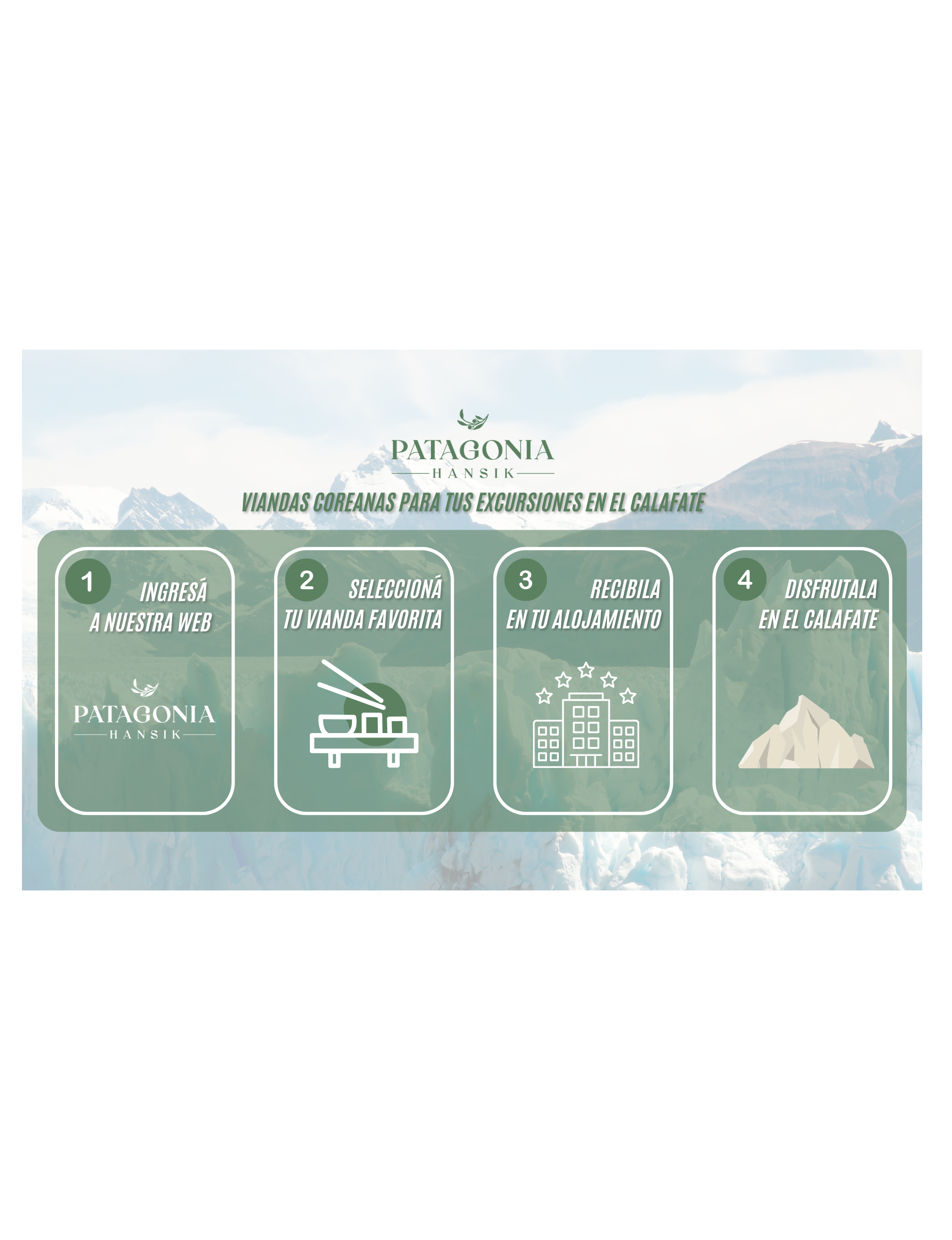 Utilizamos ingredientes frescos y de alta calidad para asegurar no solo un perfil nutricional óptimo, sino también un bienestar que te acompañará durante toda tu jornada. En Patagonia Hansik, no solo te alimentamos; te nutrimos con la esencia de la cocina coreana adaptada a tus necesidades de viaje, permitiéndote disfrutar plenamente de la majestuosidad de la Patagonia sin preocuparte por tus comidas.